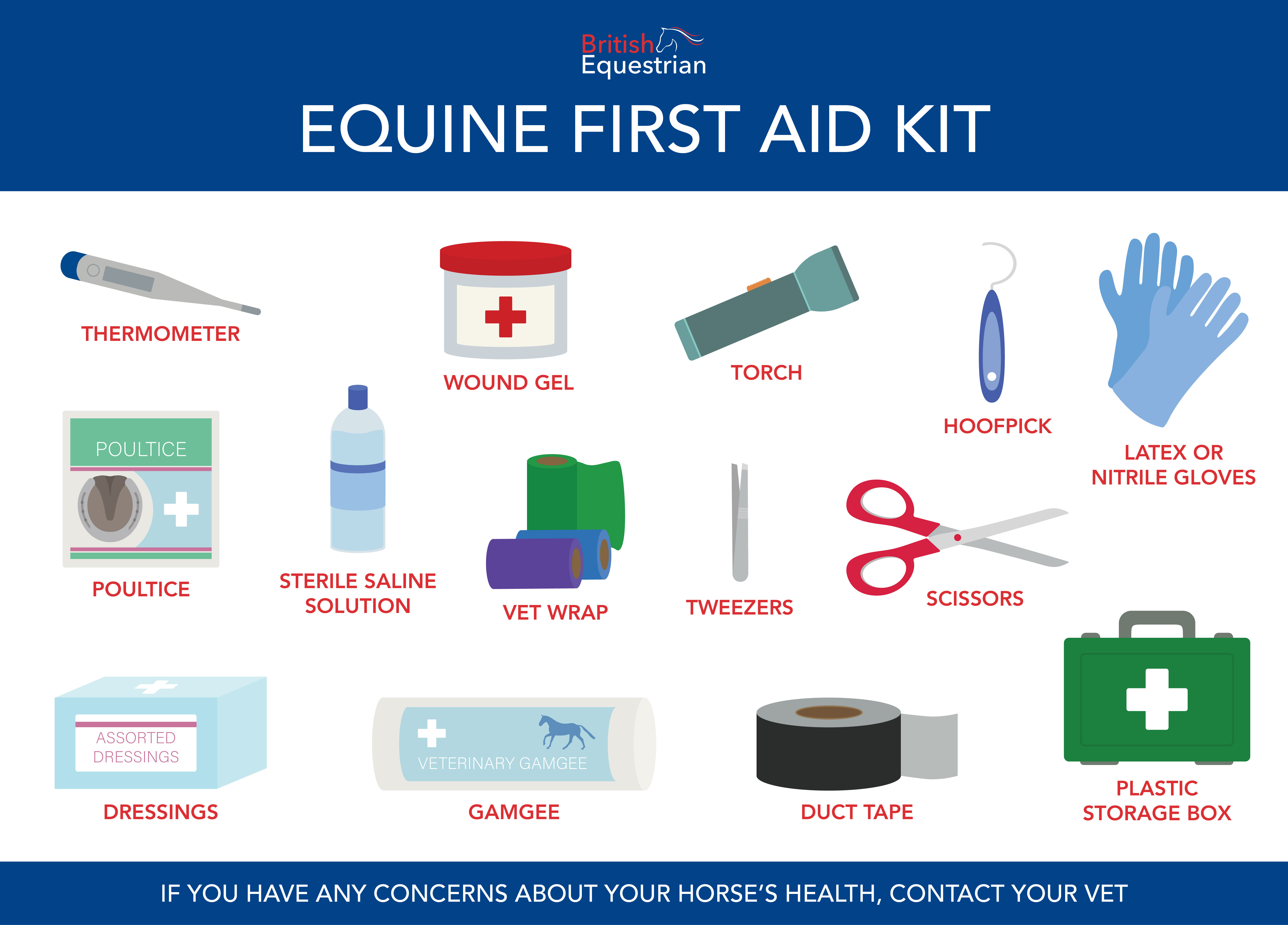 Sam Cutts from Hook Norton Equine Vets shares some of the basic first aid knowledge that all horse owners and carers should have in their arsenal, what items to keep in your first aid kit and, perhaps most importantly, how to tell when it’s time to call the vet.